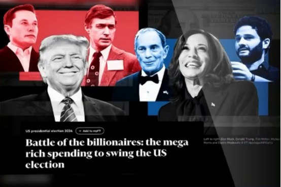 福布斯新闻网称,美国最富有的一群人,正在花费数十亿美元,押注下一位白宫的主人,以期待未来的政策版图能够遵循自己的利益诉求。在特朗普阵营中,美国首富马斯克在本届大选中,共为特朗普捐赠1.19亿美元,还做出向选民“撒钱”的举动。《纽约时报》甚至直接发问,“美国政府会成为马斯克的‘工具’”吗?