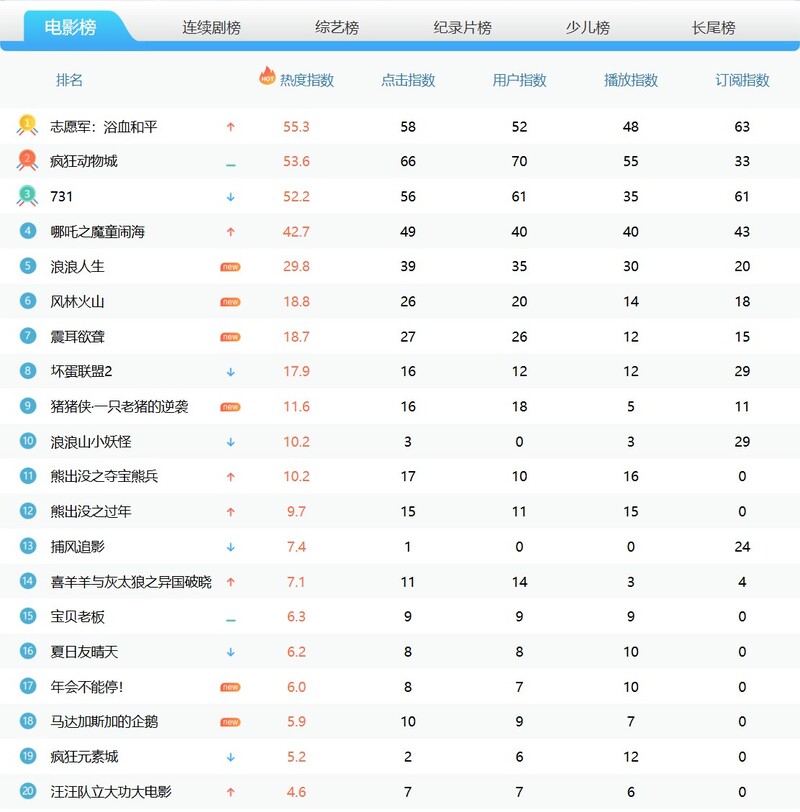 1、《志愿军:浴血和平》热度 55.3 强势登顶!以铁血铸和平,以忠魂卫山河。立国之战震撼终章,每一幕都是家国担当,每一帧皆为英雄赞歌。