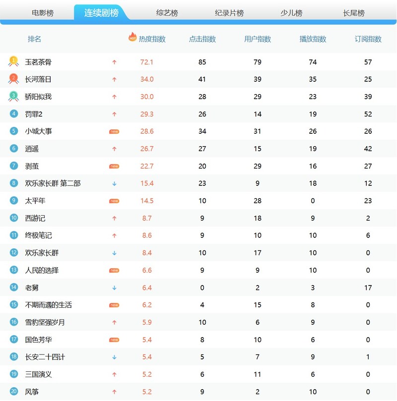 1、《玉茗茶骨》以72.1超高热度霸榜!步步心机引爆全网热议,古力娜扎演绎以茶为谋、以智破局,尽显玲珑心计、无双风华。于乱世纵横,掌乾坤变局,守心中正道!