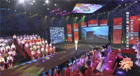 2021年6月1日,来自天津市16个区46所小学的青少年们集结于天津广播电视台组成千人合唱团,以一段经典的旋律《歌唱祖国》开启了《红色少年团》的序幕。2021年10月7日,8所小学的青少年们齐聚天津广播电视台演播大厅在云端与其余38所小学的青少年们共同合唱《唱支山歌给党听》,同学们用嘹亮的歌曲将荣耀公演推至高潮,也为首季《红色少年团》画上一个圆满的句号。